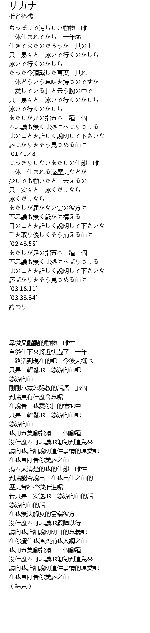 | [00:37.88] | 只 易々と 泳いで行くのかしら |