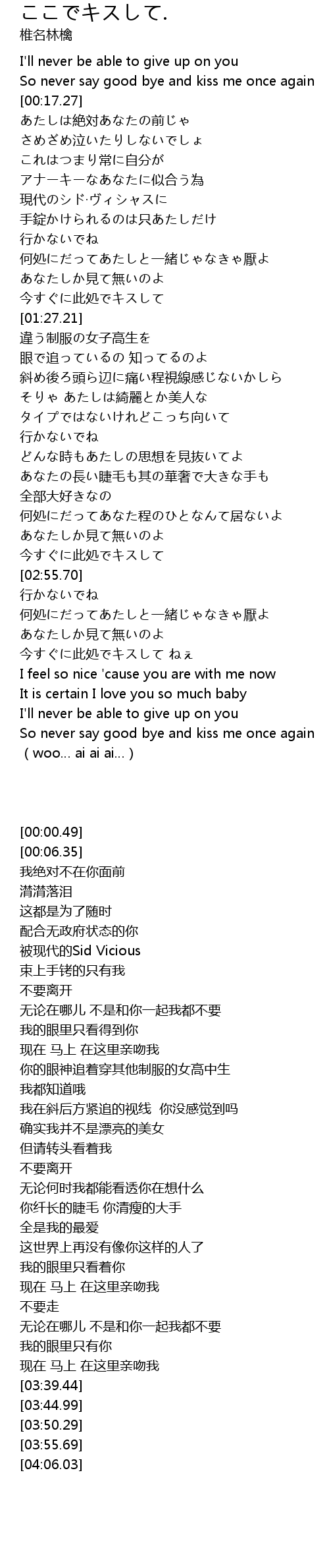 | [03:33.59] | 今すぐに此処でキスして ねぇ |