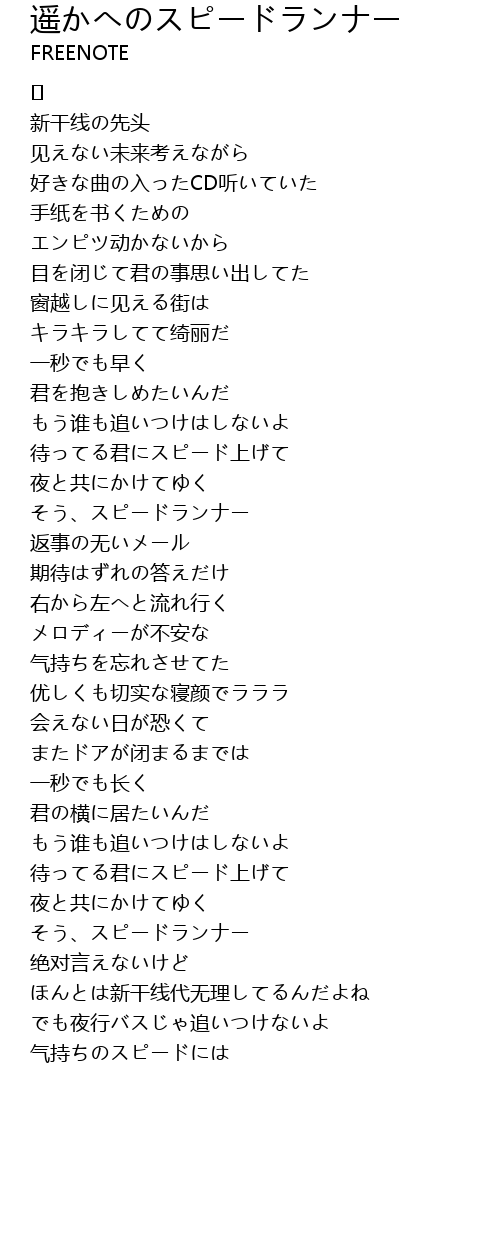 | Song | 遥かへのスピードランナー |