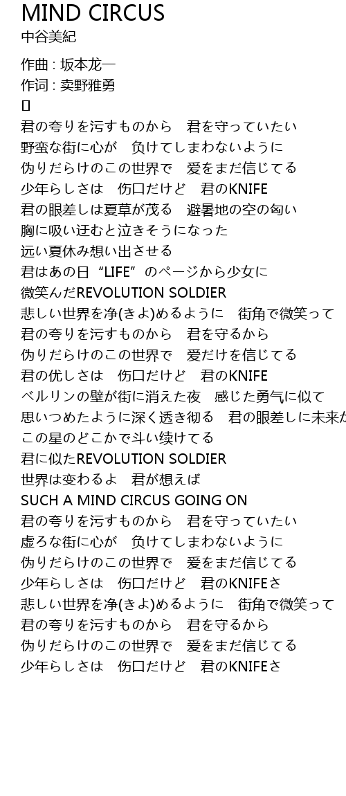 | 少年らしさは 伤口だけど 君のKNIFEさ | |