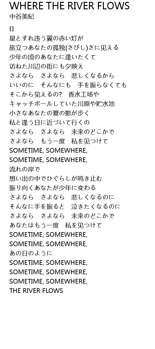 | Song | WHERE THE RIVER FLOWS |