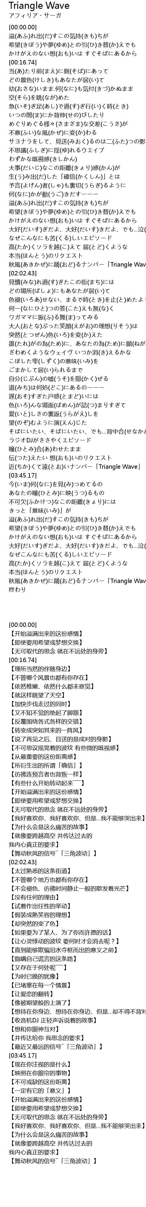 | [01:57.00] | 秋風(あきかぜ)に踊(おど)るナンバー「Triangle Wave」 |
