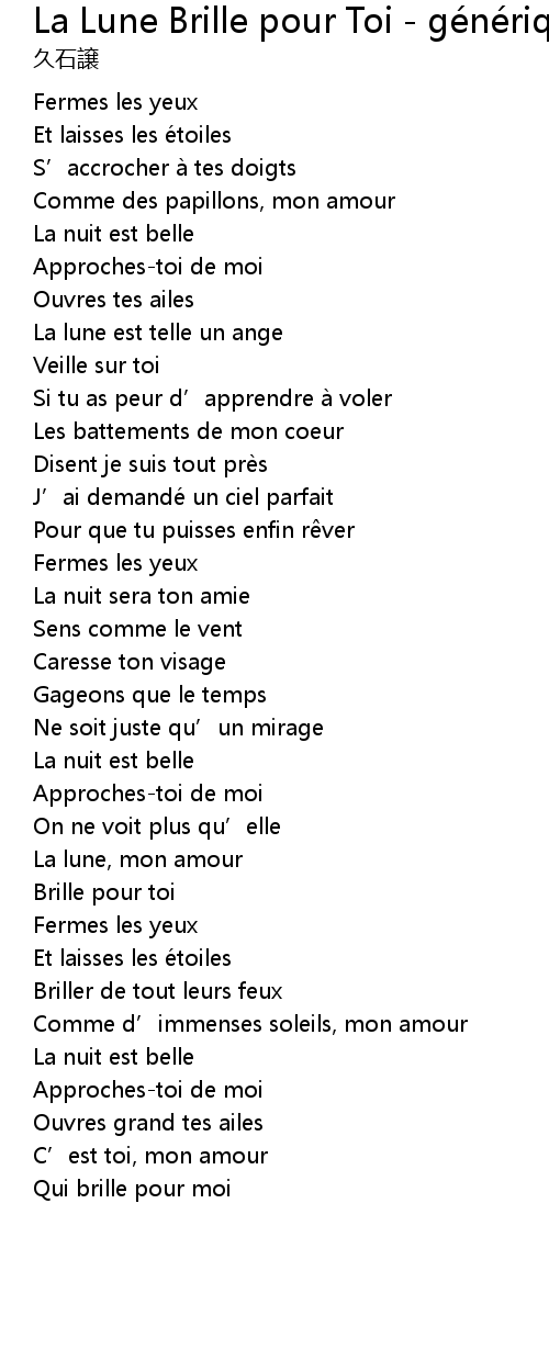 | Song | La Lune Brille pour Toi - générique de fin (chant : Vanessa Paradis) |