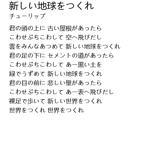 | 雲をみんなあつめて 新しい地球をつくれ | |