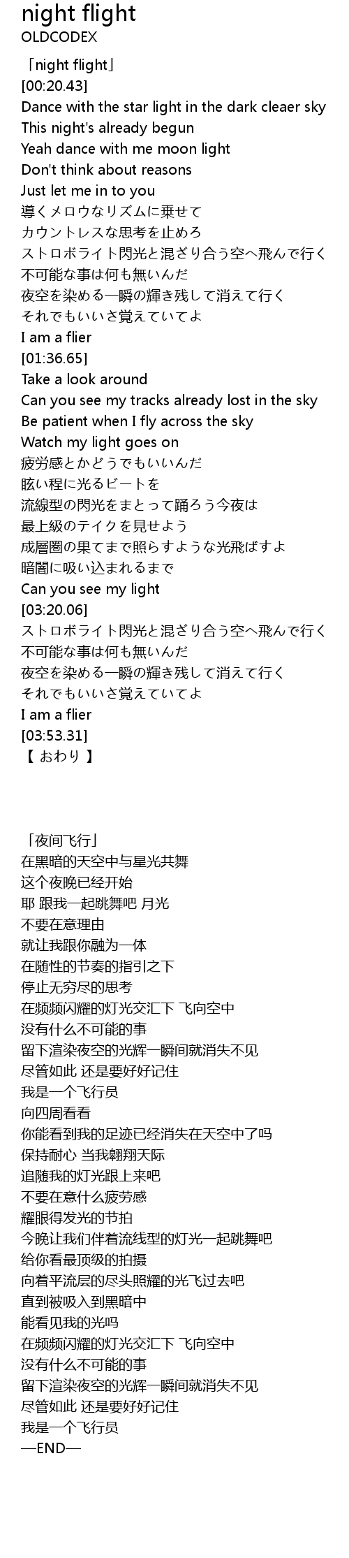 | [00:01.43] | 「night flight」 |