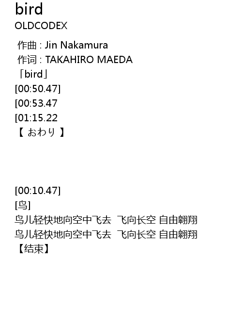 | [00:10.47] | 「bird」 |