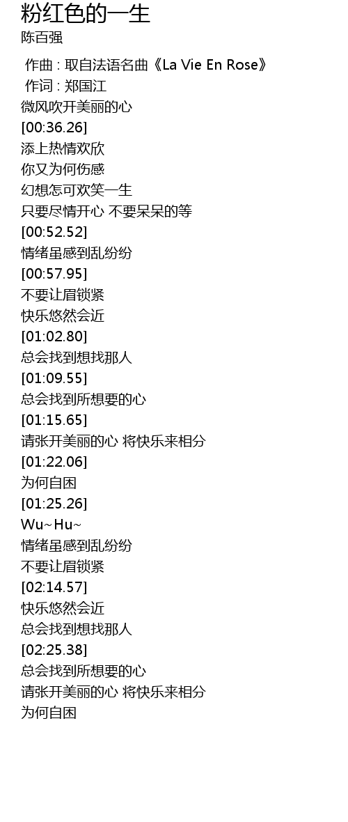| [00:00.00] | 作曲 : 取自法语名曲《La Vie En Rose》 |