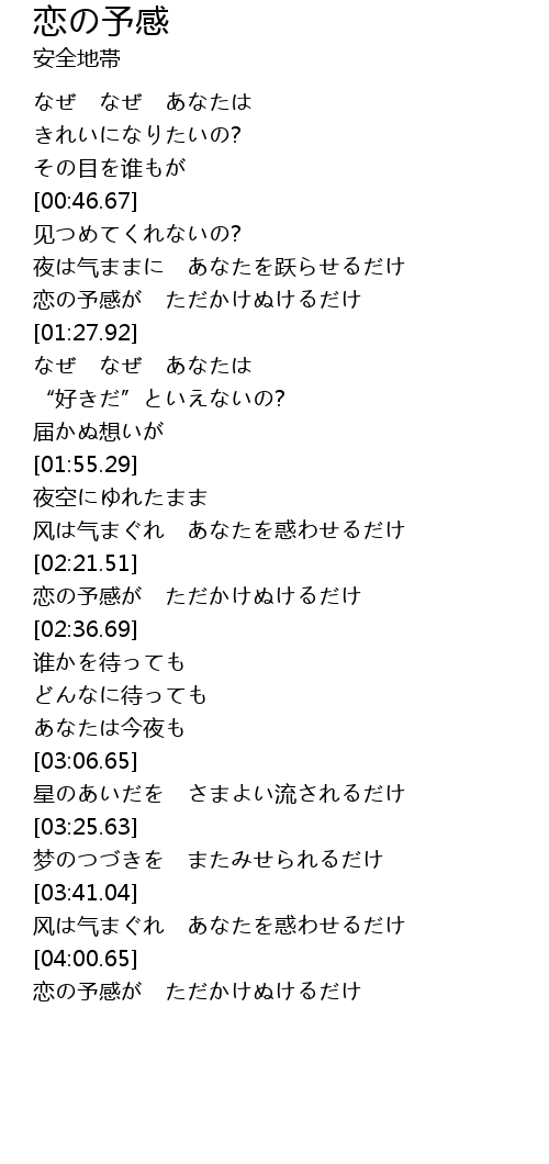 | [04:01.21] | 恋の予感が ただかけぬけるだけ |