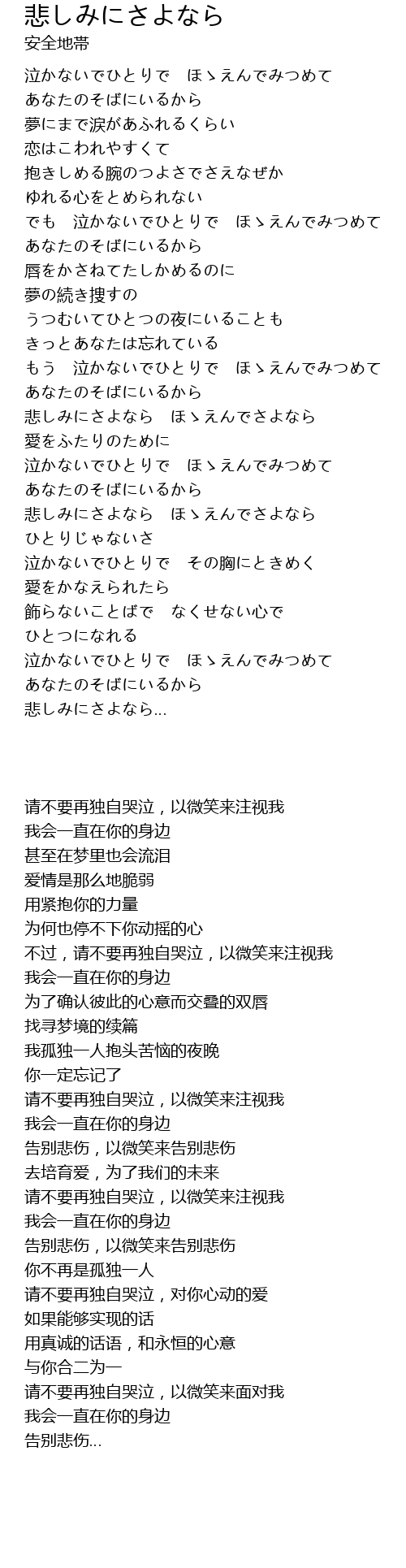 悲しみにさよなら ほゝえんでさよなら |