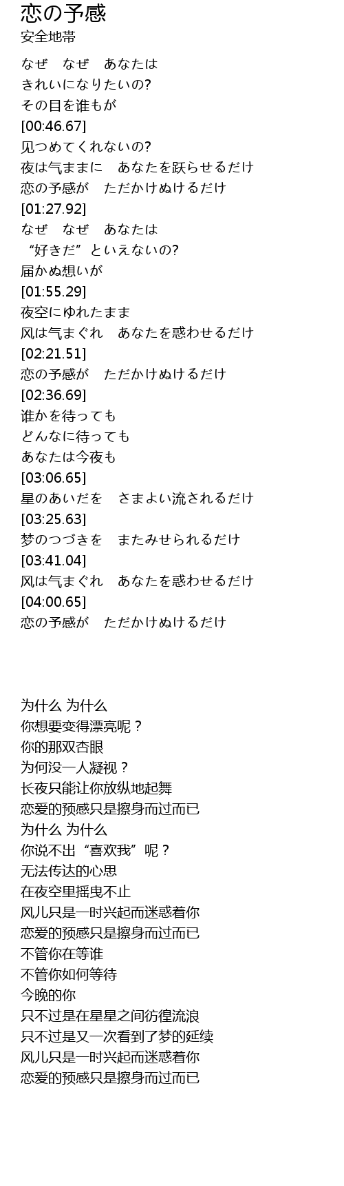 | [02:22.63] | 恋の予感が ただかけぬけるだけ |