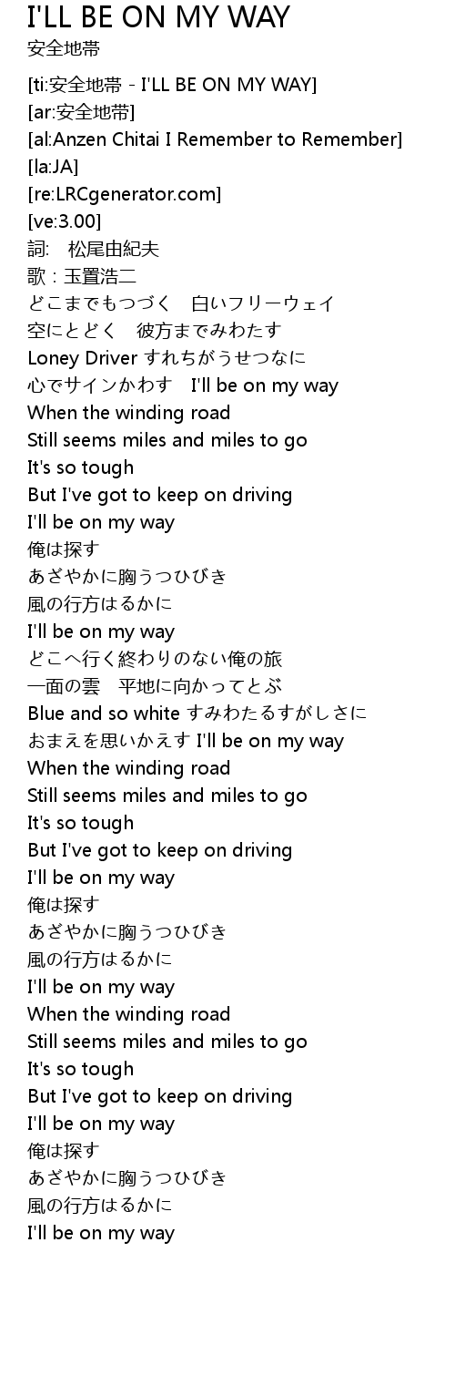| [ti:安全地帯 - I'LL BE ON MY WAY] | |