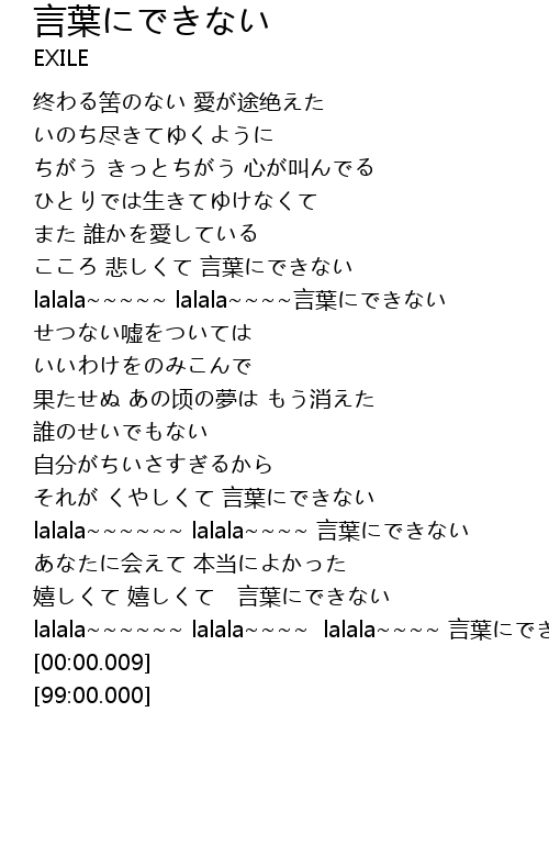 | [00:59.77] | lalala~~~~~ lalala~~~~言葉にできない |
