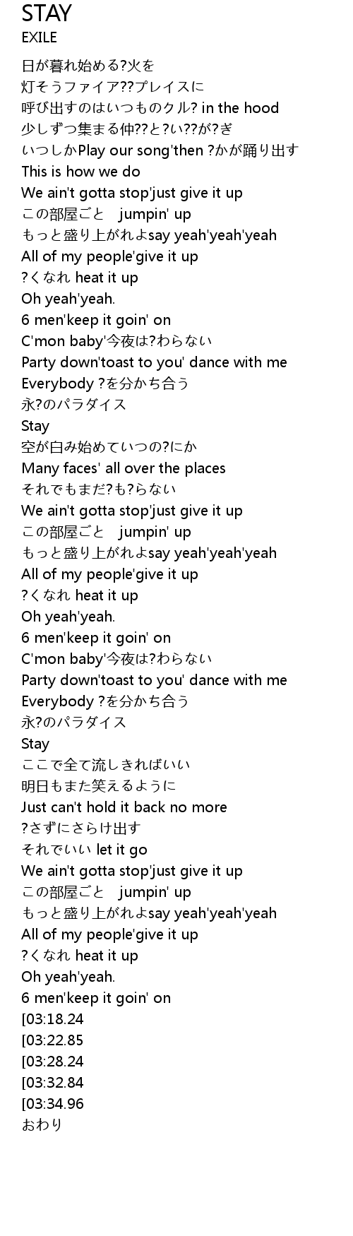 | [03:37.84][03:18.24] | C'mon baby'今夜は?わらない |