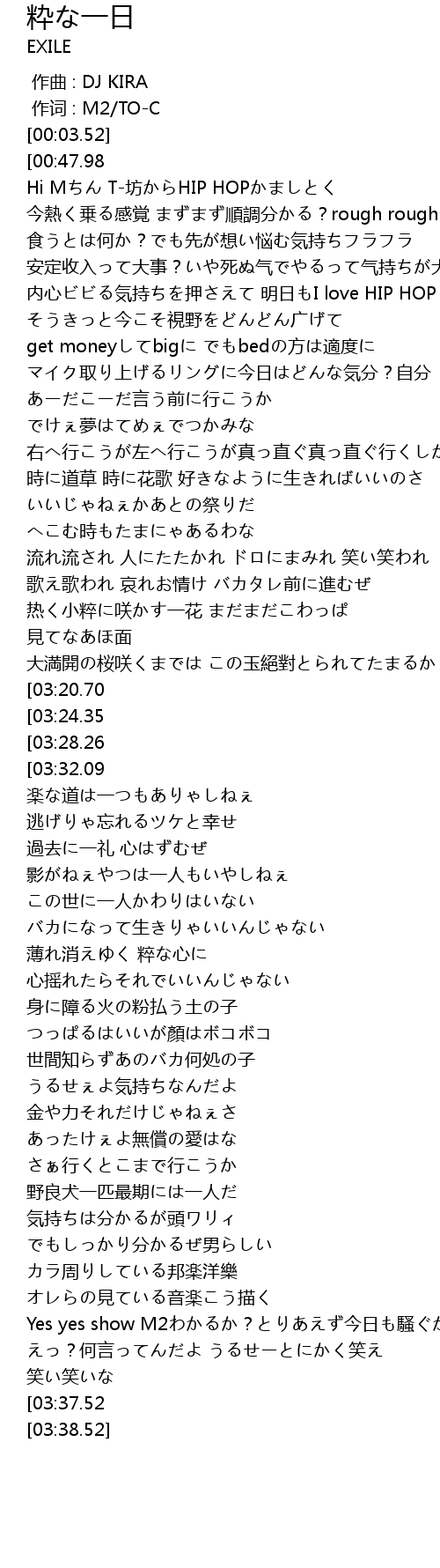 | [02:48.52] | 気持ちは分かるが頭ワリィ でもしっかり分かるぜ男らしい |