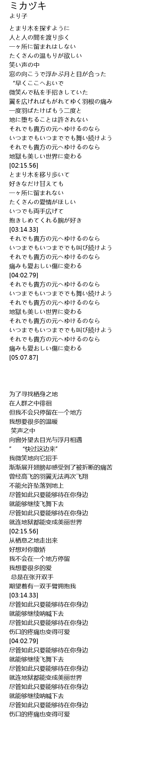 | [01:56.00] | いつまでもいつまででも舞い続けよう |