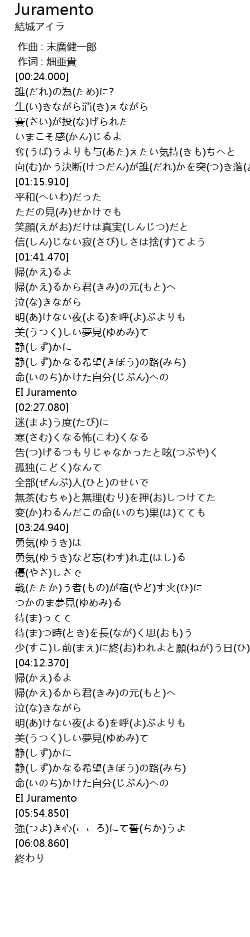 | [01:45.220] | 帰(かえ)るから君(きみ)の元(もと)へ |