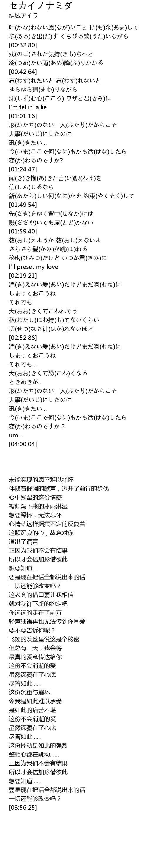 | [01:54.85] | 嗫(ささや)いても届(とど)かない |