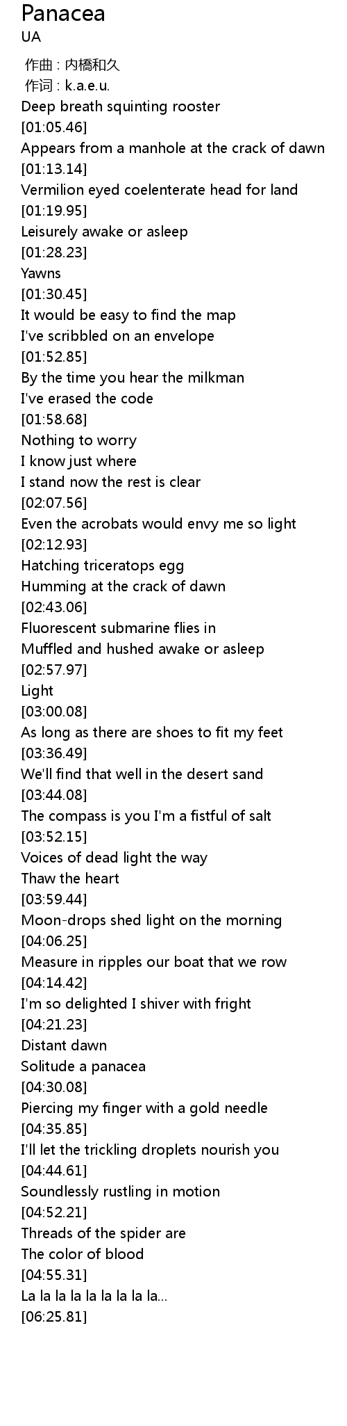 | [00:01.00] | 作词 : k.a.e.u. |