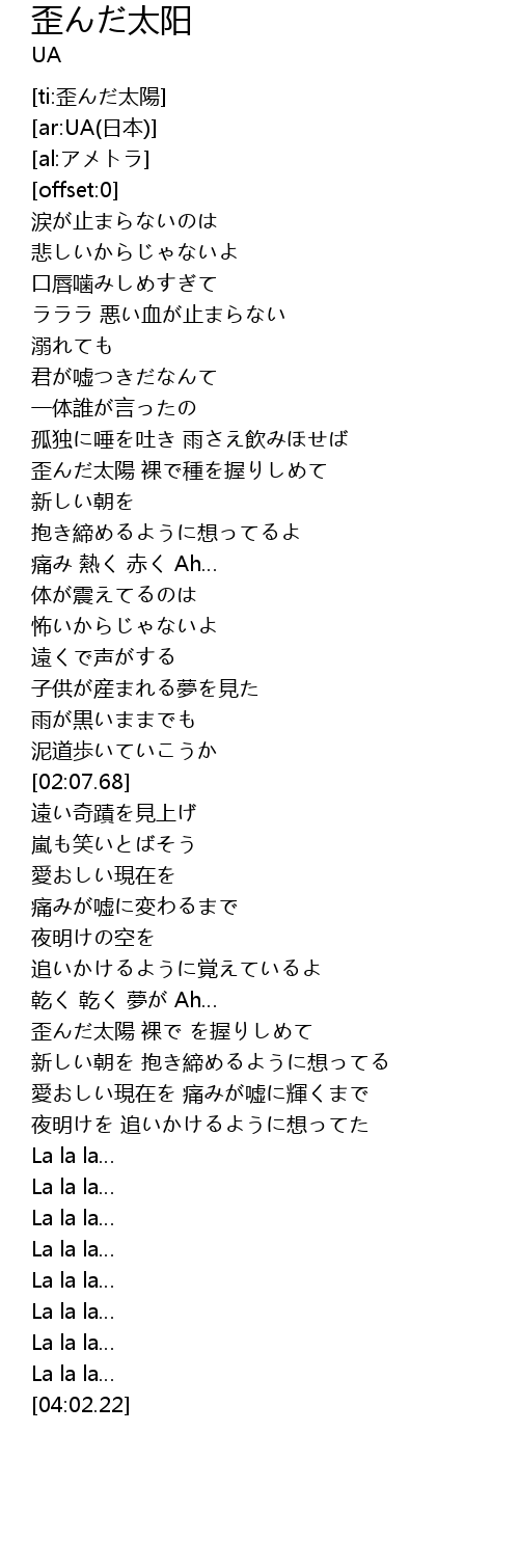 | [02:55.67] | 歪んだ太陽 裸で を握りしめて |