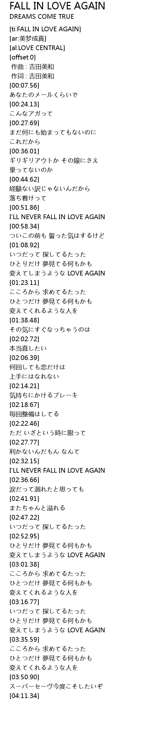 | [02:32.86] | I' LL NEVER FALL IN LOVE AGAIN |