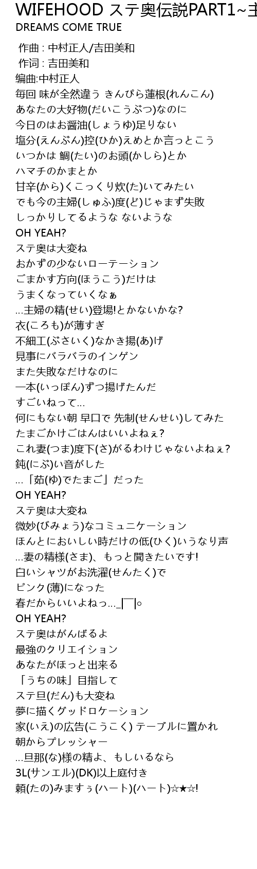 | Song | WIFEHOOD ステ奥伝説PART1~主妇の精 妻の精~ |