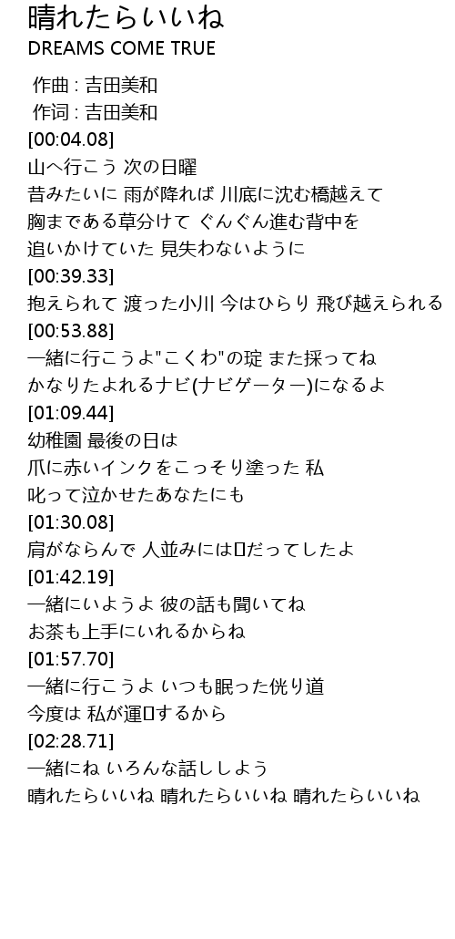 | [02:38.02] | 晴れたらいいね 晴れたらいいね 晴れたらいいね |