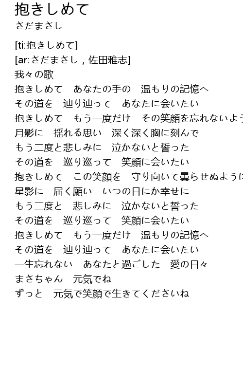 | [00:26.82] | 抱きしめて あなたの手の 温もりの記憶へ |