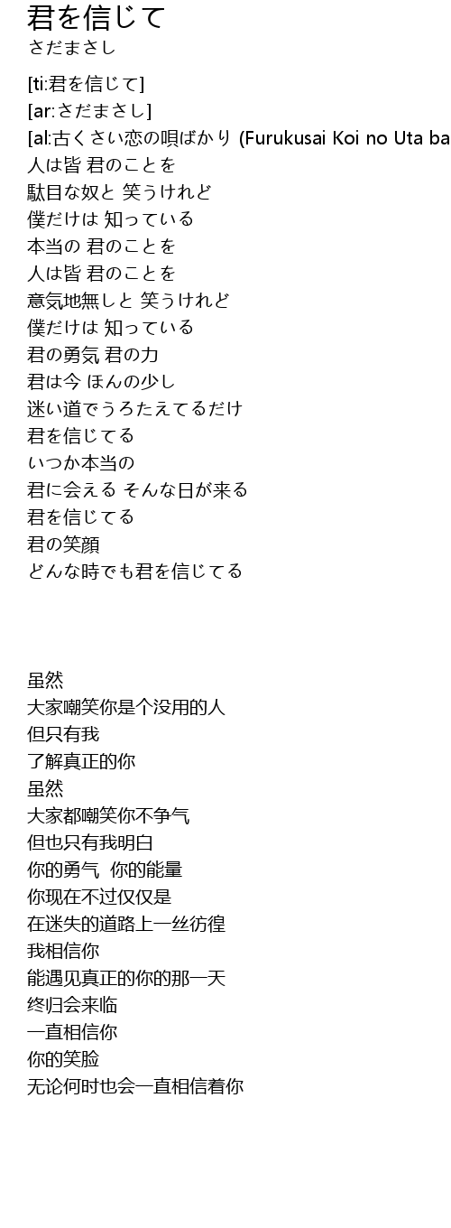 | [00:14.19] | 駄目な奴と 笑うけれど |