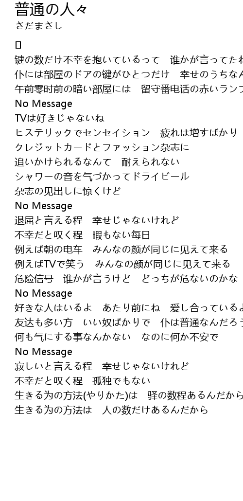 | 例えば朝の电车 みんなの颜が同じに见えて来る | |