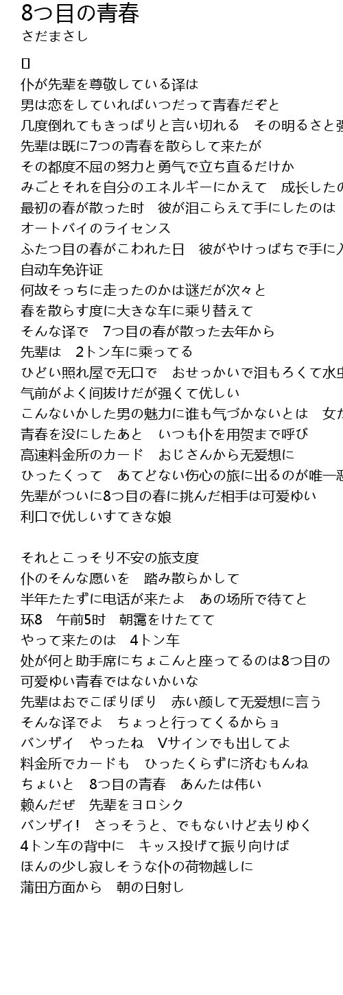 | 青春を没にしたあと いつも仆を用贺まで呼び | |