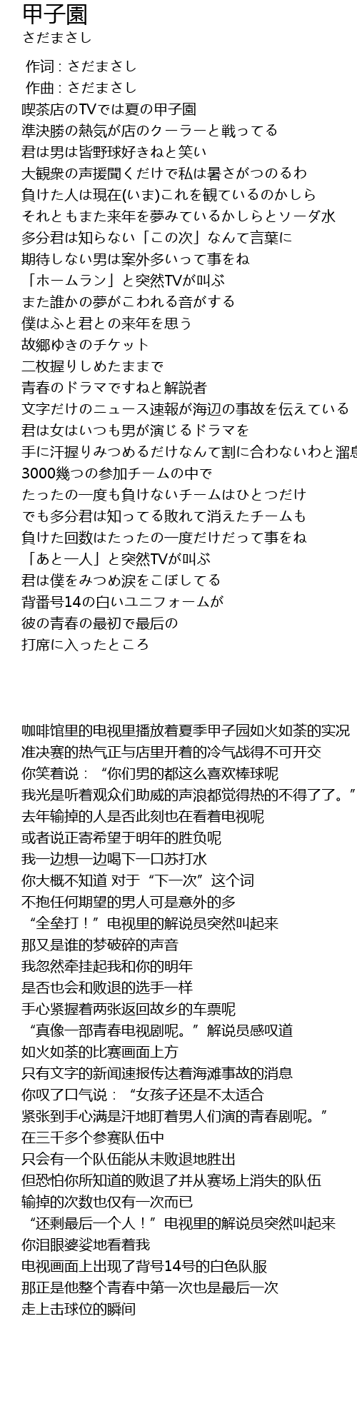 | [00:15.30] | 喫茶店のTVでは夏の甲子園 |