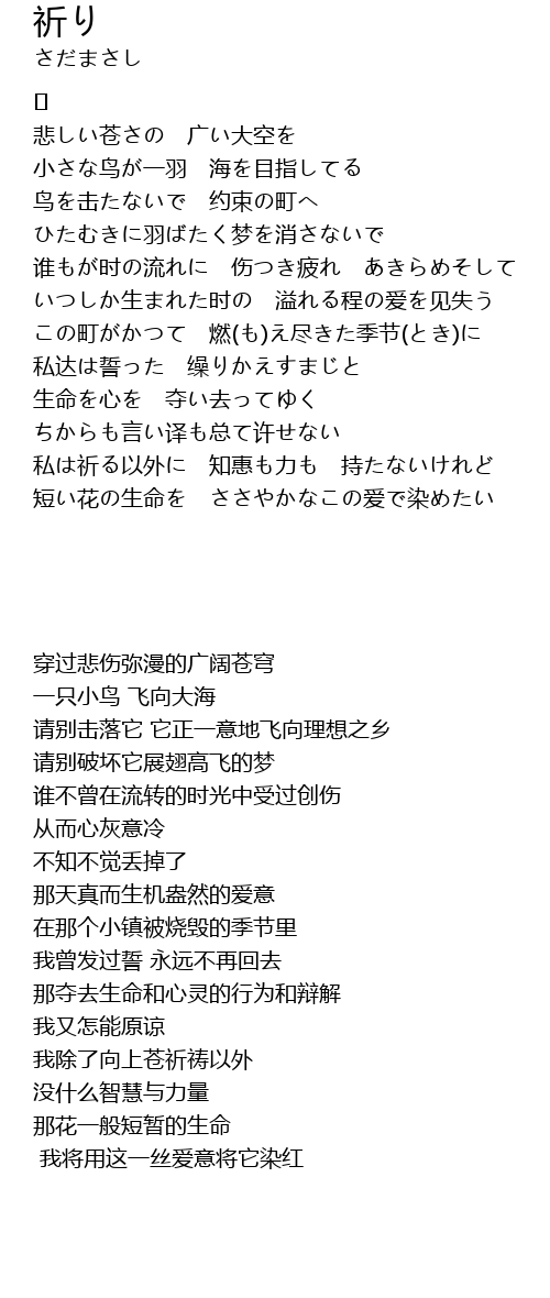 | 私は祈る以外に 知惠も力も 持たないけれど | |