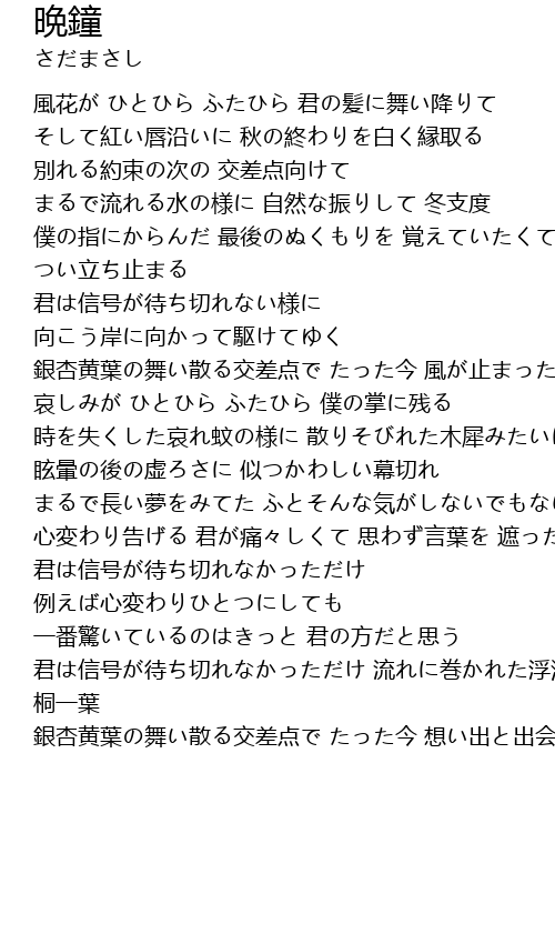 | 君は信号が待ち切れなかっただけ 例えば心変わりひとつにしても | |