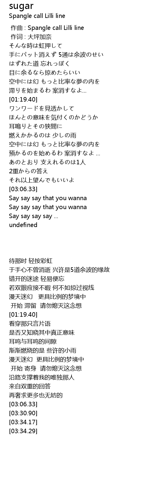 | [00:00.00] | zuò qǔ : Spangle call Lilli line |