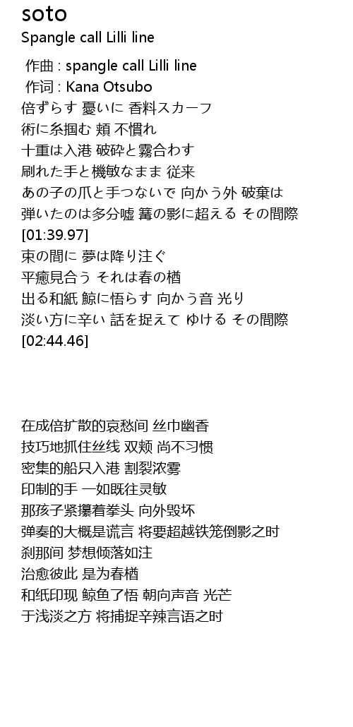 | [00:00.00] | zuò qǔ : spangle call Lilli line |