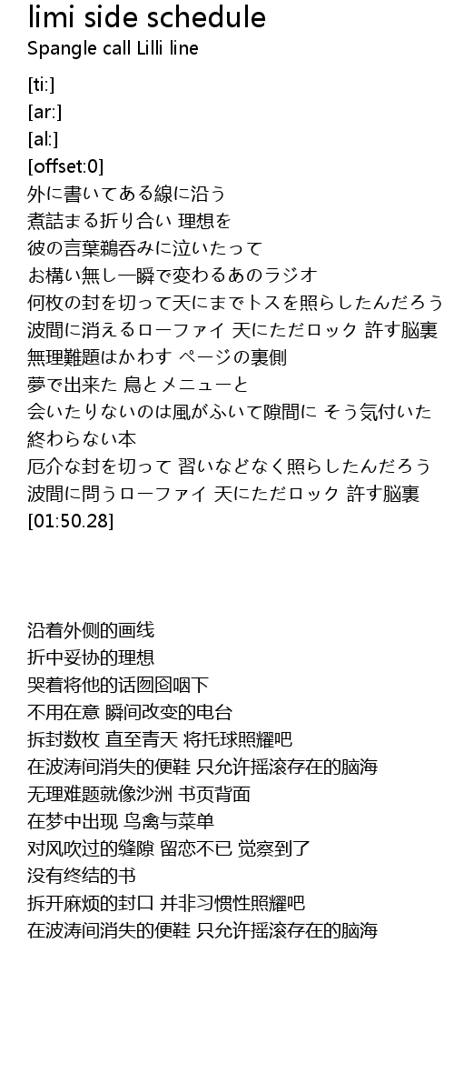 | [01:37.04] | 波間に問うローファイ 天にただロック 許す脳裏 |