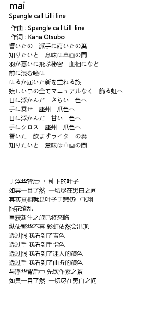 | [00:00.00] | zuo qu : Spangle call Lilli line |