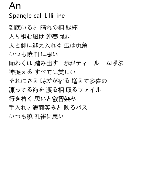 | Artist | Spangle call Lilli line |