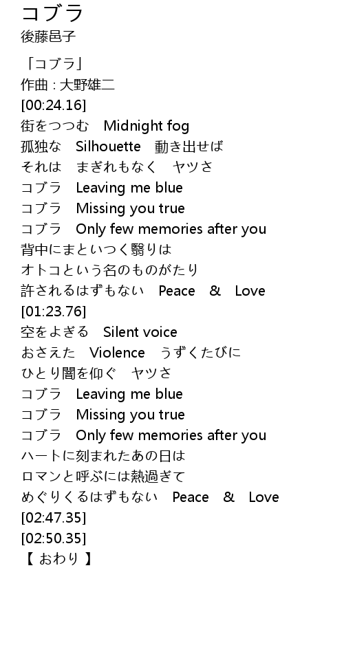 | [02:37.05] | めぐりくるはずもない Peace & Love |