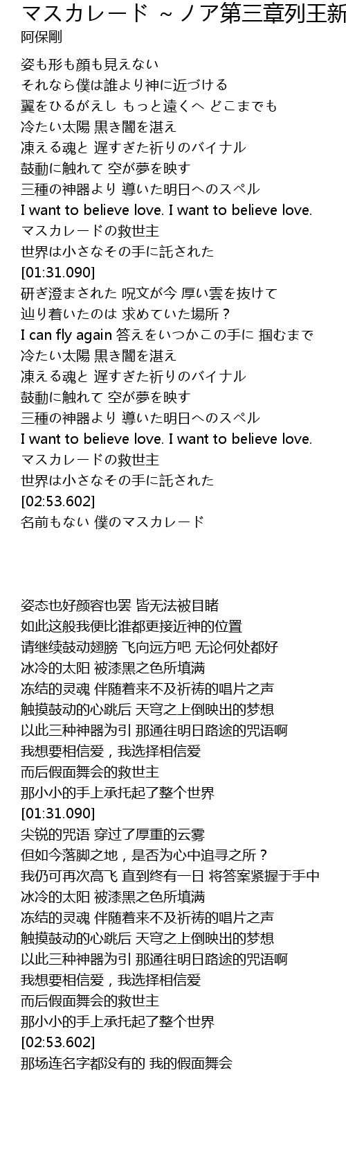 | [02:57.635] | 名前もない 僕のマスカレード |