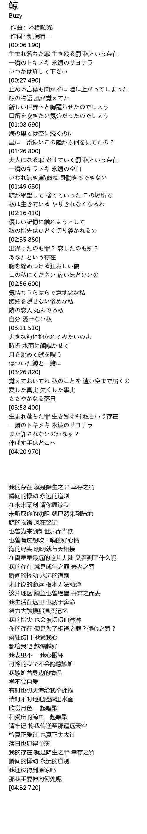 | [03:22.500] | 傷ついた鯨と一緒に |