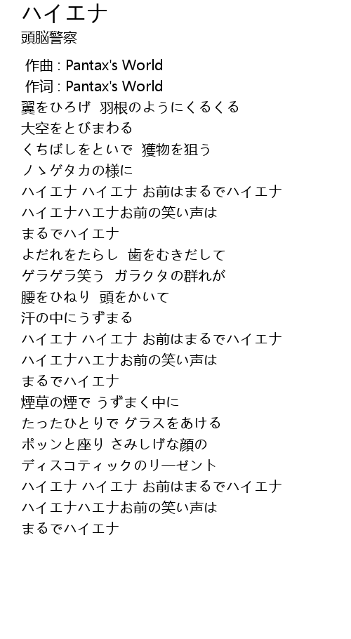 | [01:46.000] | ハイエナ ハイエナ お前はまるでハイエナ |