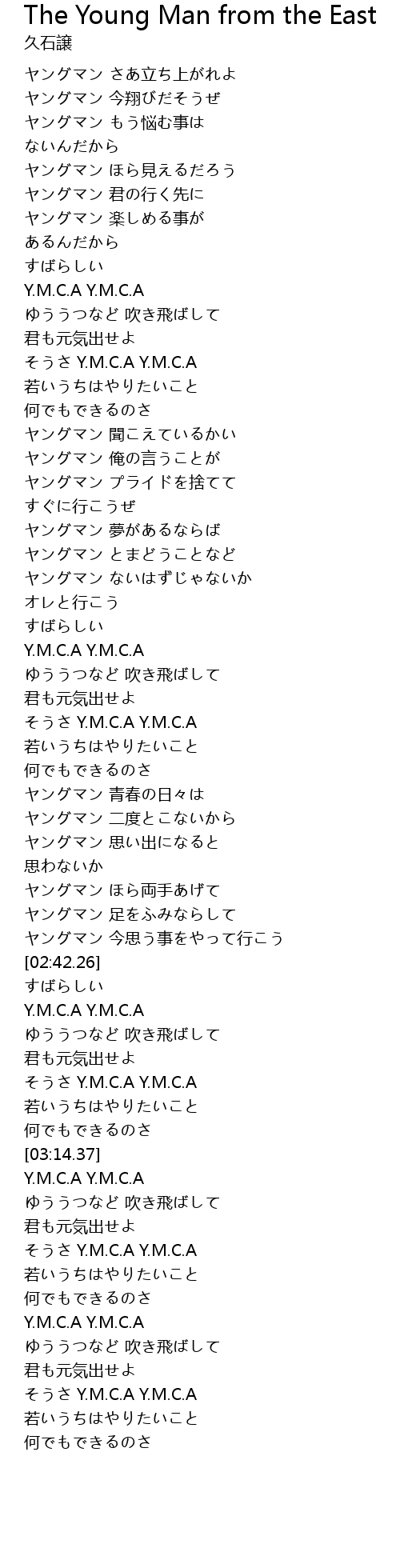 | [02:59.48] | Y. M. C. A Y. M. C. A |