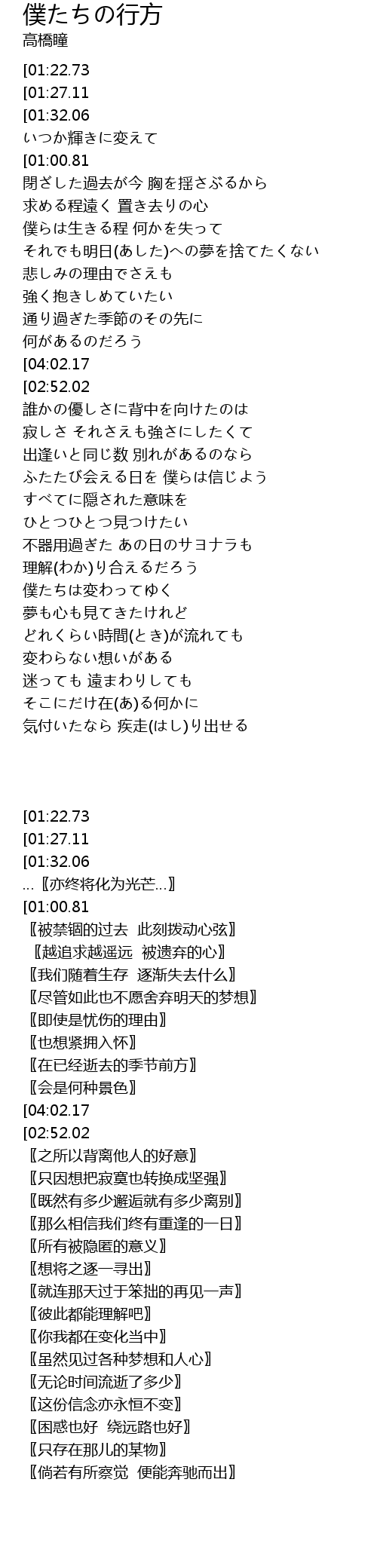 | [00:16.51][01:27.11][03:52.76] | たどり着く場所を探し続け |