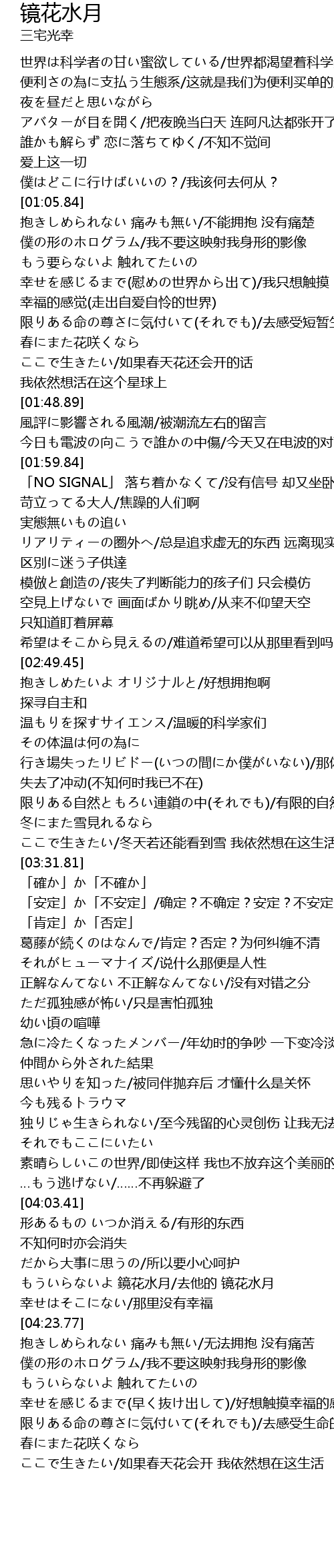 | [02:11.10] | 実態無いもの追い リアリティーの圏外へ/总是追求虚无的东西 远离现实 |