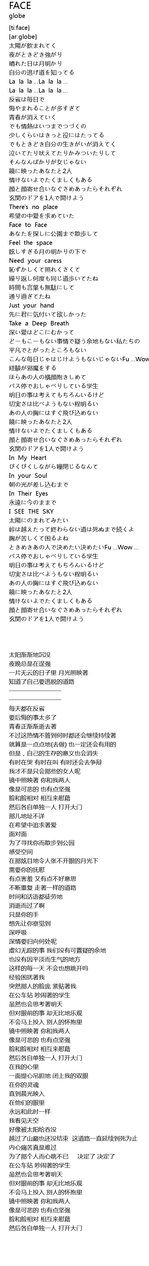 | [02:29.762] | Face to Face |