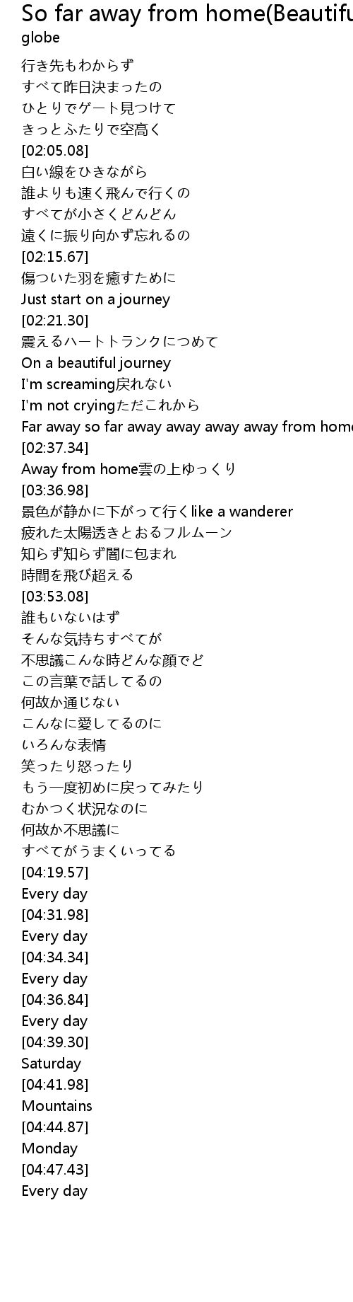| [03:33.05] | Away from home雲の上ゆっくり |