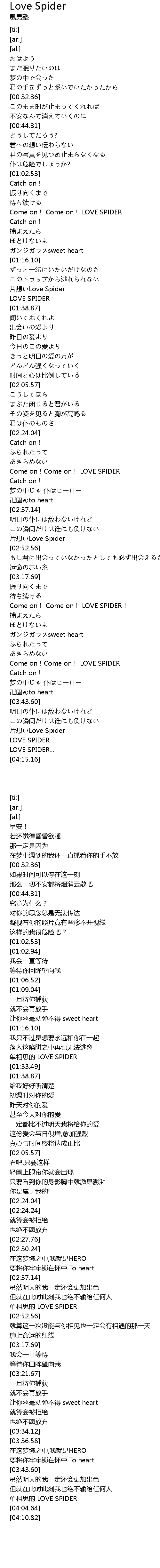 | [01:33.49] | LOVE SPIDER |
