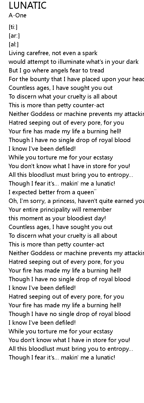 | [01:46.97] | Though I fear it's… makin' me a lunatic! |