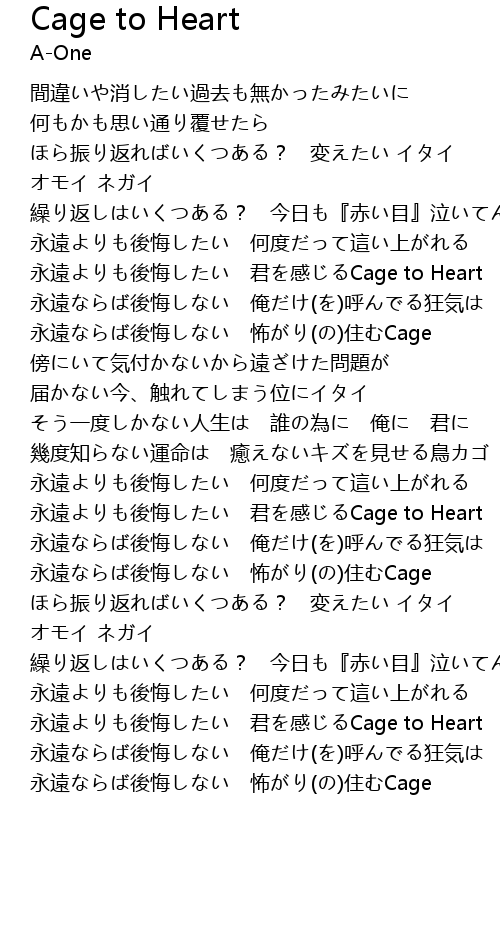 | [01:04.24] | 永遠よりも後悔したい 君を感じるCage to Heart |